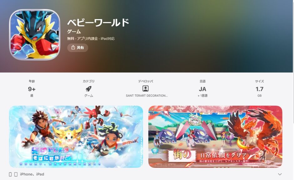 ベビーワールドがポケモンのパクリだと話題になっています。このゲームをダウンロードして遊ぶ際には注意をしてください。審査に通した後で内容を入れ替えている可能性が高く、ベビーワールドをインストールしたり、インストールした後にアカウント連携をするのは危険な可能性が非常に高い。