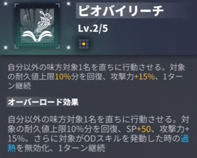 即時行動付与のユニーク性:スキル3は、味方1人を対象に「直ちに行動させる」という極めて強力な効果を持っています。回復や攻撃力アップの付随効果もあり、戦術の幅を大きく広げることが可能です。