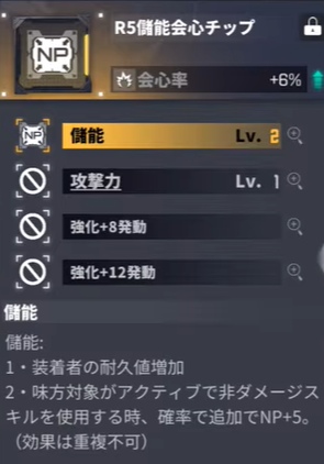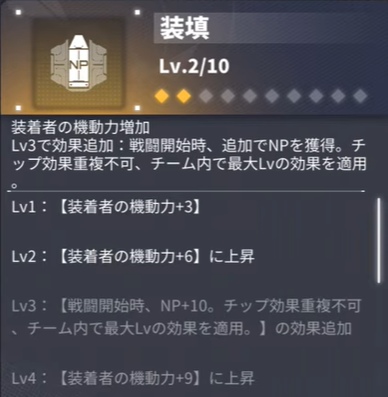 行動するたびにNPが溜まるため、NP供給能力をさらに特化させたい場合に有効です。