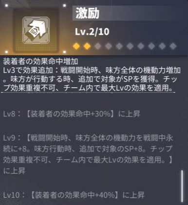 味方が行動するたびにSPを回復させます。ロベラのようにSP消費が激しいキャラクターと組ませる際に最適です。