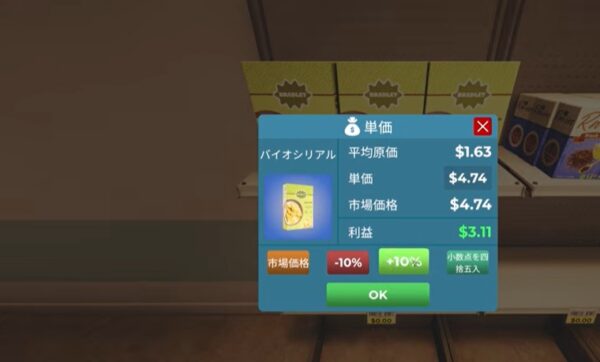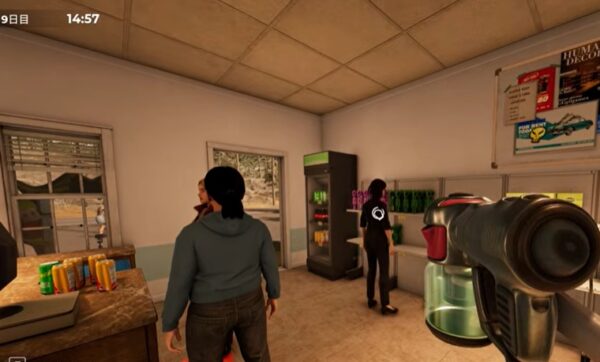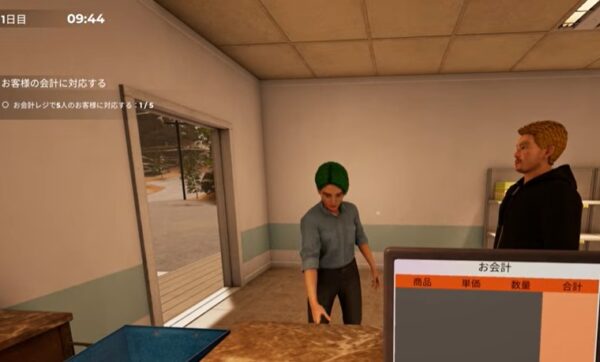商品の仕入れ⇒ 店舗内のPCから注文します。配送ドローン(トラックに偽装したもの)が店の裏に物資を届けるので、自分で回収して陳列します。