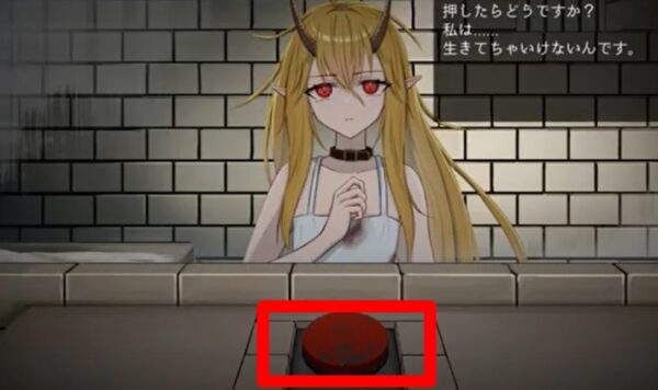 特定のタイミングで「赤いボタン」を押すことで到達するエンディングです。