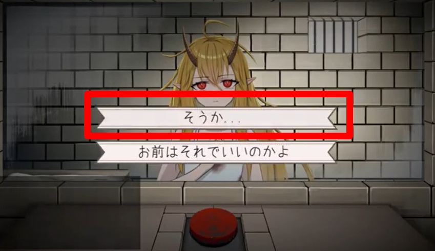 特定のタイミングで「赤いボタン」を押すことで到達するエンディングです。